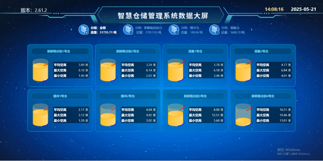 数据精准“零误差”:体积测量精度高,测量范围覆盖广,无论是物料最高点、最低点还是平均物位,都能精准捕捉,同时同步计算体积、质量数据,让库存账实完全匹配。